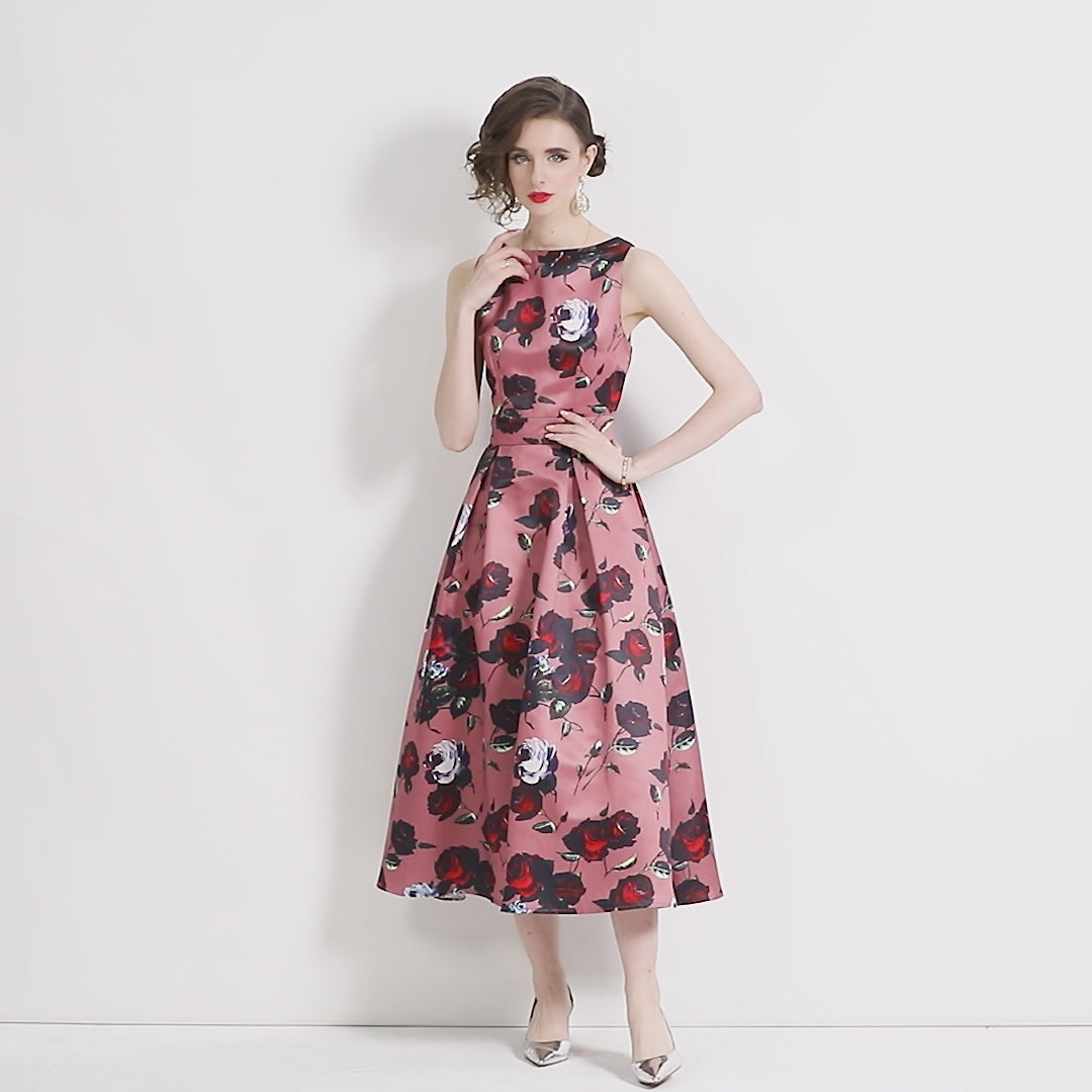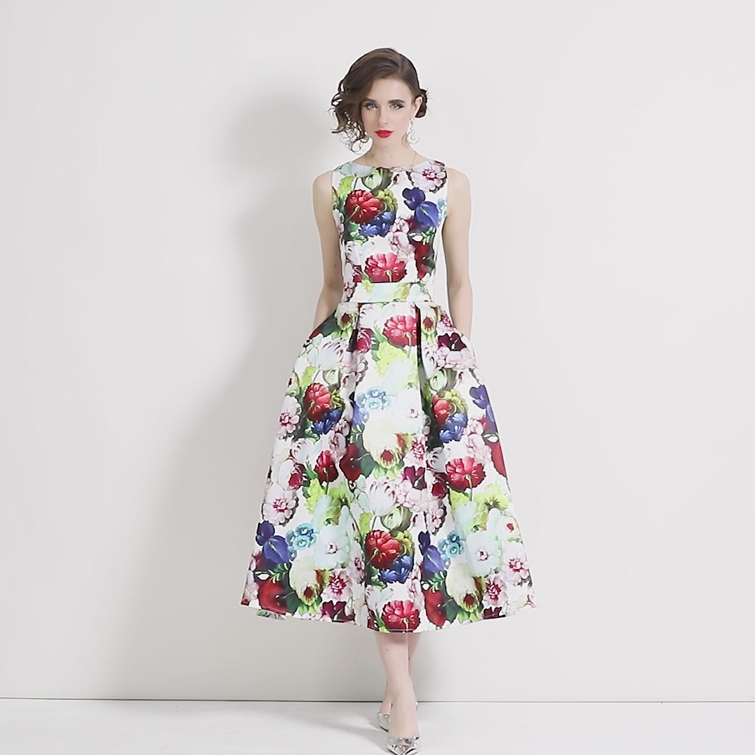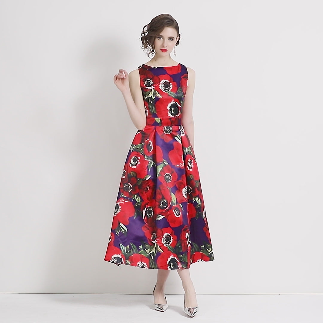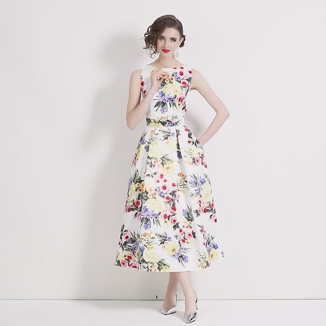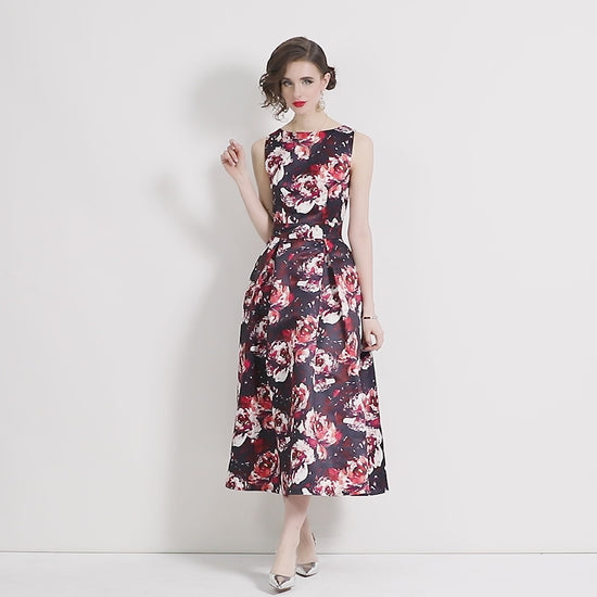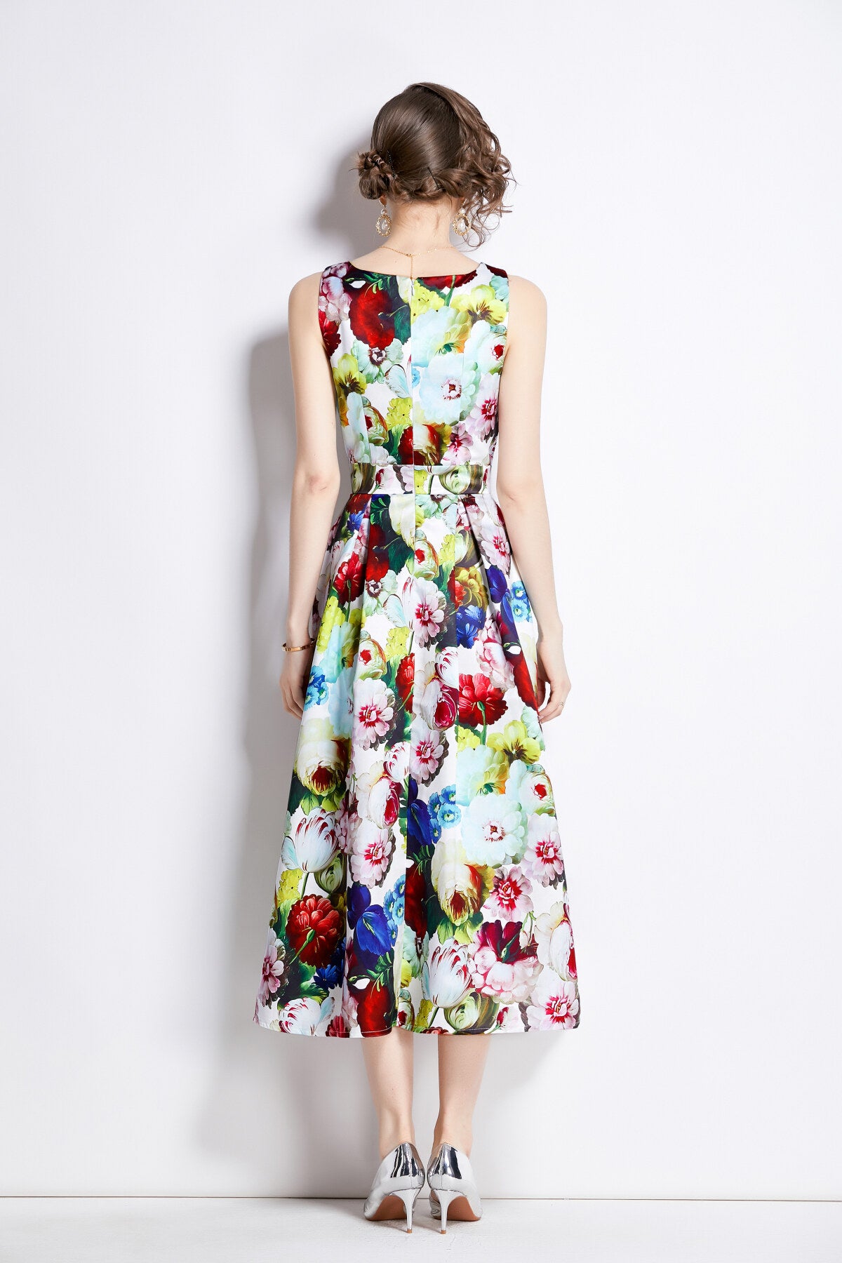 Sleeveless High Waisted Structured Cut A Line Dress 893