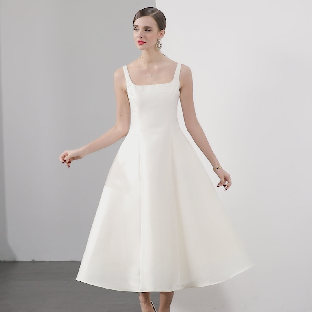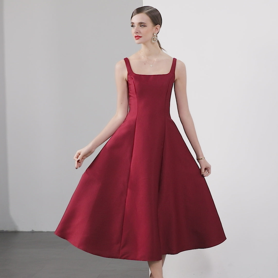 Pair this square neck dress for women with pointed metallic heels and a minimalist clutch for a modern gala. It’s modern femininity at its finest. Bold in its simplicity and unforgettable in its silhouette, get the Square Neck Thick Strap Long Flared Ballerina Dress from DZA by 0cm.