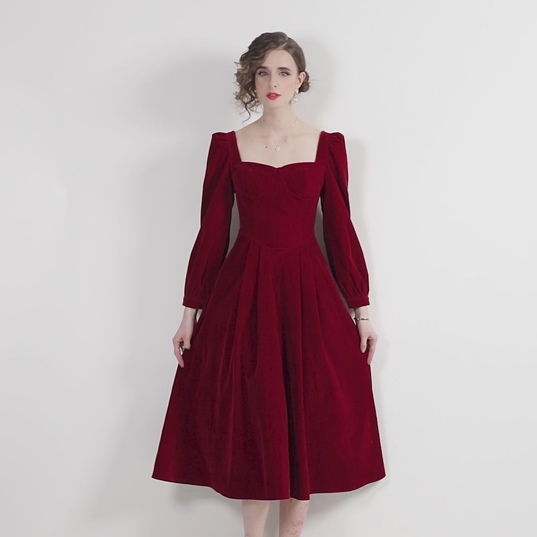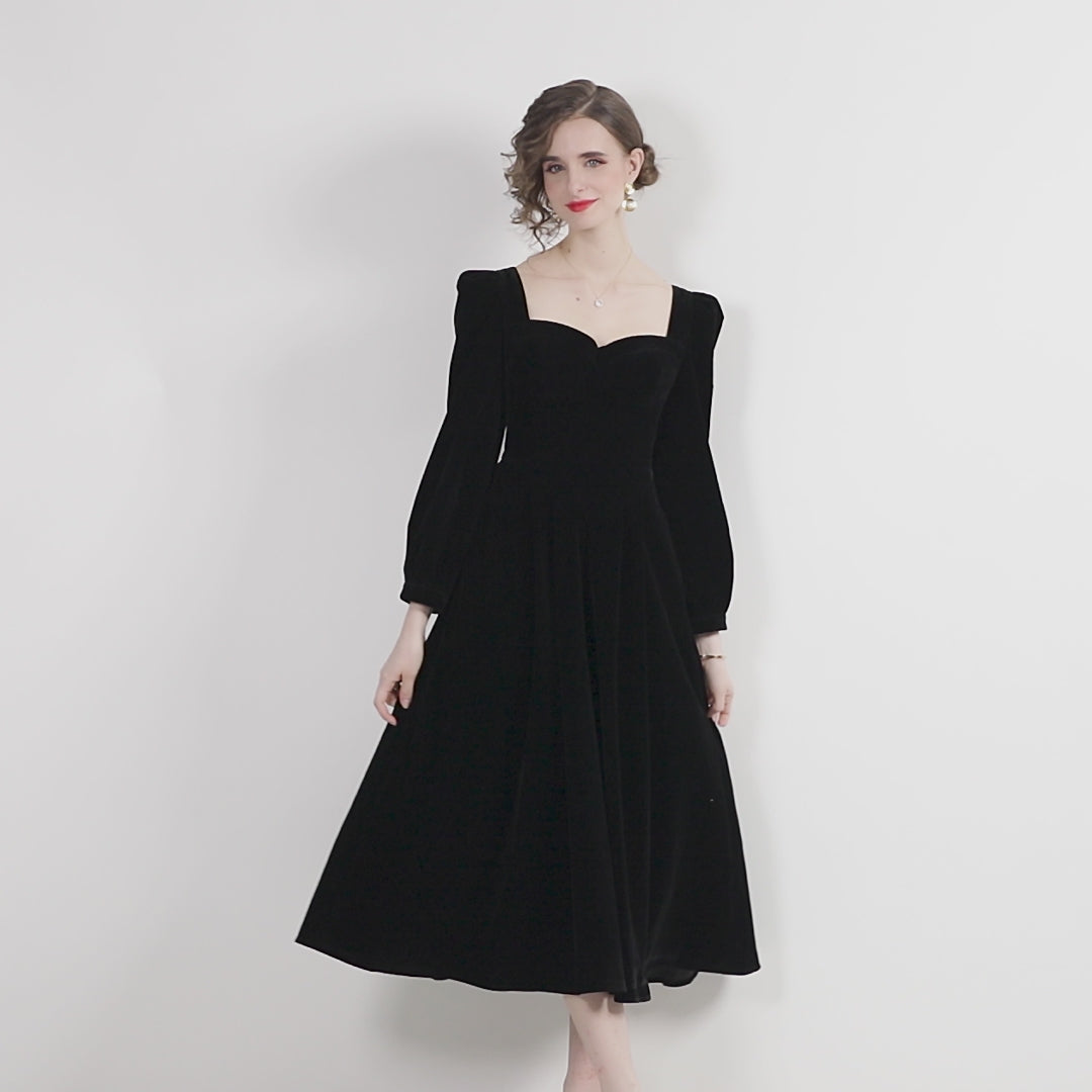 A celebration of timeless beauty and refined charm, the Square Sweetheart Neckline Vintage Velvet Dress brings classic romance into the spotlight. With its flattering neckline and rich velvet texture, this dress captures the grace of vintage silhouettes with a touch of modern femininity, perfect for candlelit dinners, elegant soirées, or winter weddings.