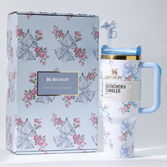 The Stanley Blue Bow Blossom Tumbler [Limited Edition] captures the dreamy calm of spring blue skies and soft white clouds, adorned with dainty floral blooms and elegant bows for a refreshingly feminine touch.
