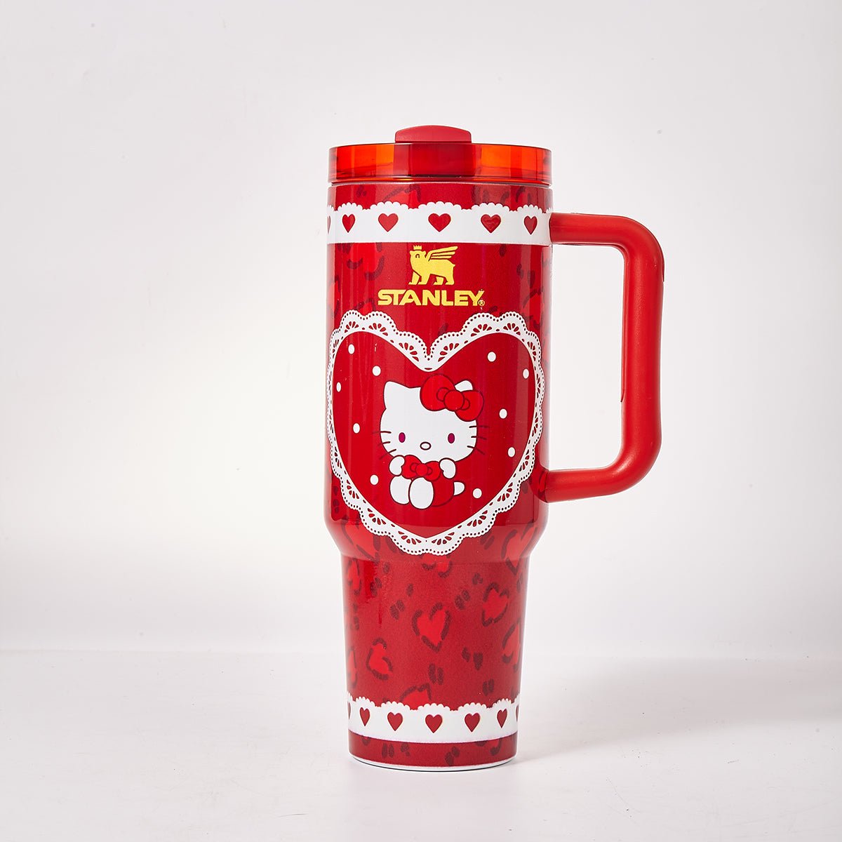 Bring playful charm to your daily hydration with the Stanley x Hello Kitty Sweet Hearts Luminous Tumbler - Limited Edition. Featuring adorable Hello Kitty artwork framed by sweet heart motifs, this exclusive design combines cute aesthetics with collectible appeal. The luminous finish glows in the dark, creating a unique look that stands out both day and night. Designed with convenience in mind, this tumbler includes a comfortable handle, a reusable straw topped with a heart detail, and a large capacity perfect for everyday use. The coordinated limited-edition packaging adds an extra touch of elegance, making it ideal for gifting or collecting. Whether you're heading to work, traveling, or relaxing at home, this tumbler delivers both style and functionality while celebrating the timeless charm of Hello Kitty.