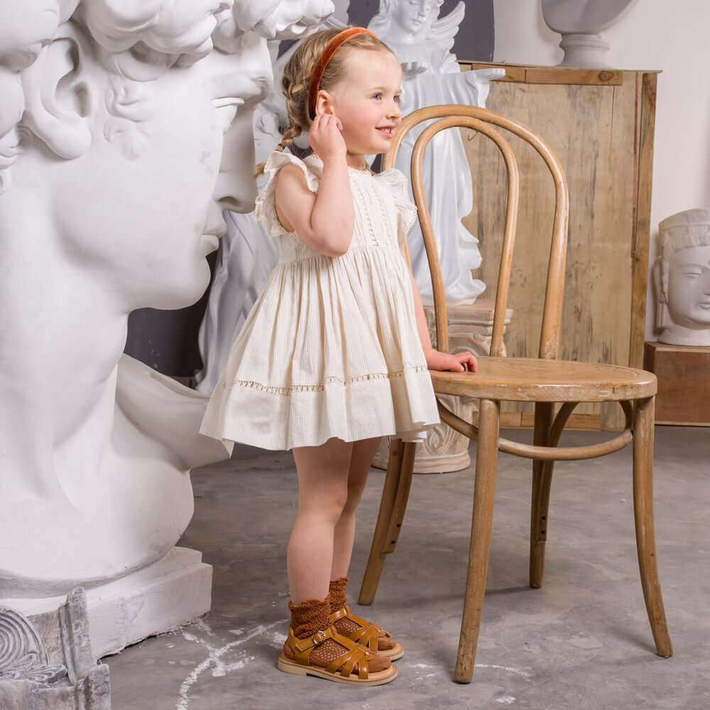 These open-toe sandals with a basket-weave leather pattern promote air circulation to keep your little girl's feet feeling fresh. These reinforced toe caps also provide extra protection and a snug fit. Meanwhile, the ankle strap also secures these non-slip sandals for girls even when they're engaged in lots of movement. Get these Summery Soft Sole Non-Slip Girl from Little Blue Lamb by 0cm.