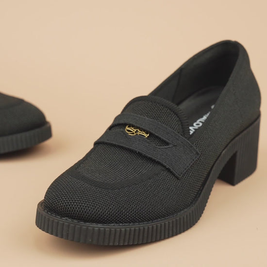 Thick Soled Block Heel Versatile Slip On Loafers 21D28-3