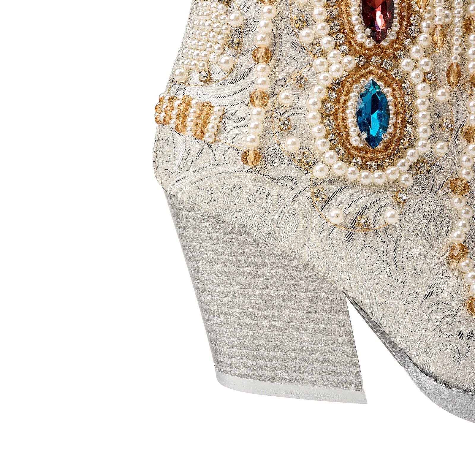 Venetian Gem and Pearl Encrusted White Cowgirl Boots