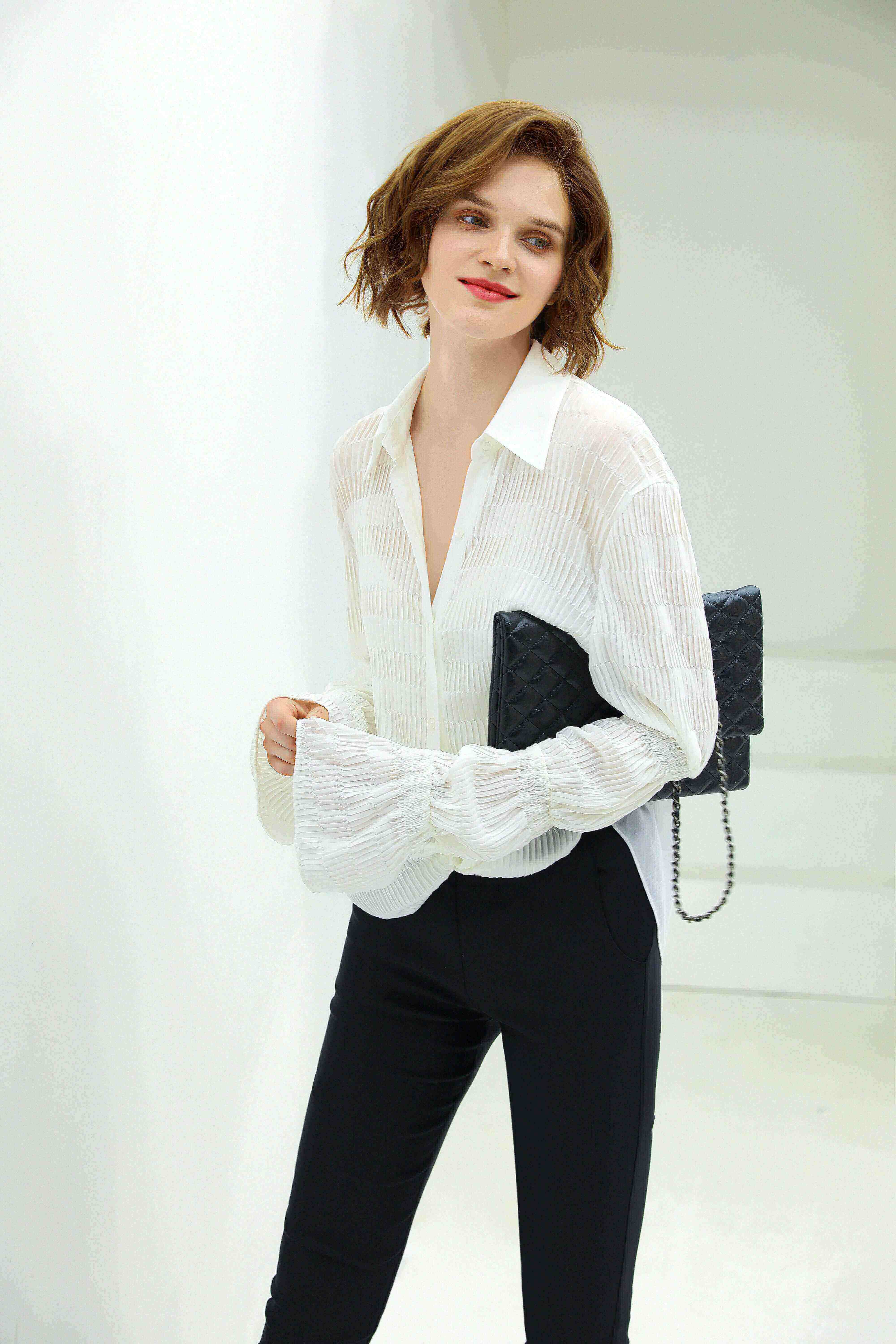 • Crisp, long sleeves, perfect for layering under blazers or coats